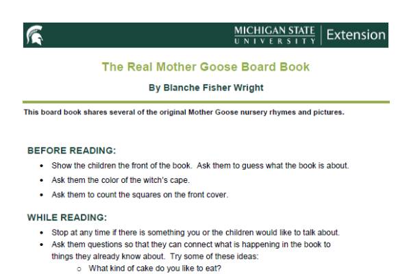 Infant Nursery Rhymes And Fingerplays Center For Early Literacy